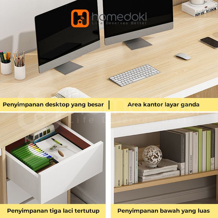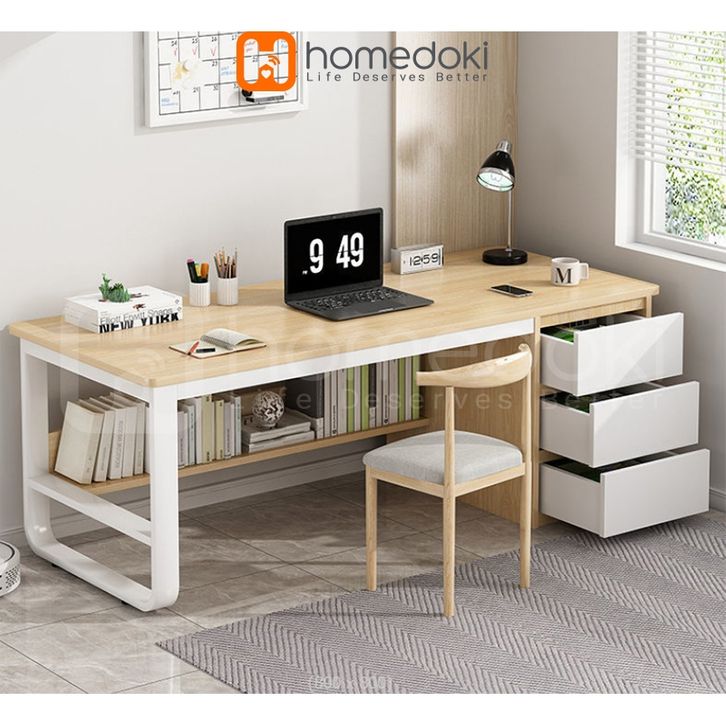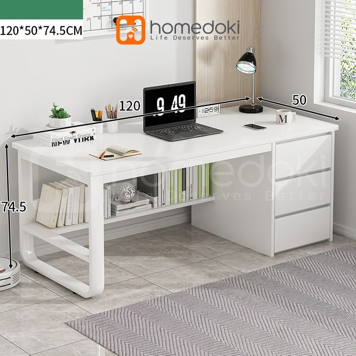 TERLARIS Homedoki Meja Kantor/Meja Komputer/Meja Kantor Dengan Laci/Meja Kerja Minimalis/120cm Meja Belajar enomnk