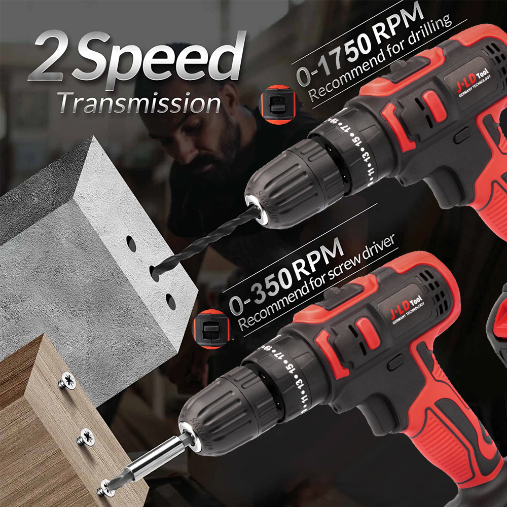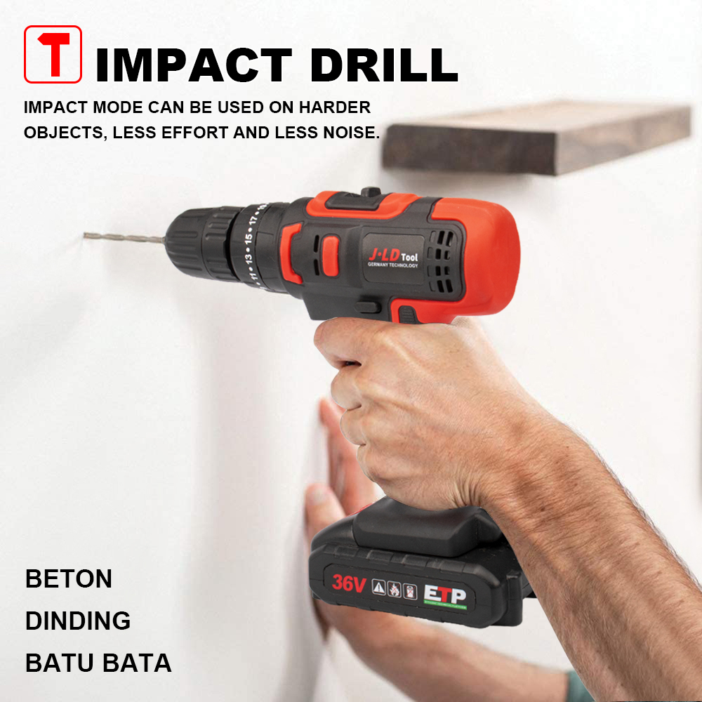 JLD 36vf Mesin Bor Baterai Tangan Cordless Drill impek baterai komplit 10mm bor beton/kayu/dinding/tembok jld tool Impac