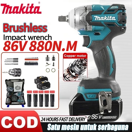 880NM Bor Impact Makita Cordless Impact Wrench Brushless 86V Bor Impact Baterai 2 Baterai Electric Impact Wrench Spanner