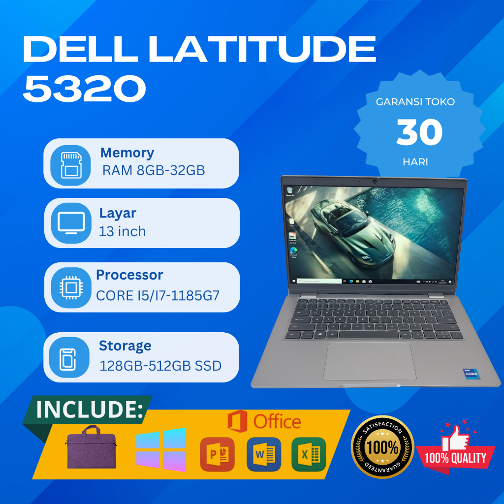 LAPTOP DELL LATITUDE 5320 CORE I5/I7-1185G7 RAM 16GB-32GB SSD 256GB-512GB SECOND BERGARANSI