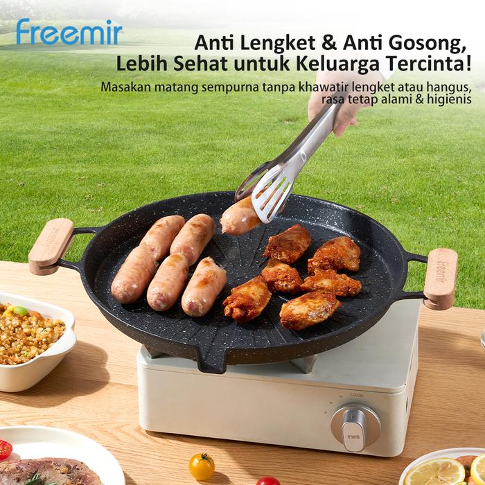 SPECIAL NEW LAUNCH freemir Grill pan 32 cm Anti Lengket Gagang Kayu Alat Masak Pemanggang Serbaguna