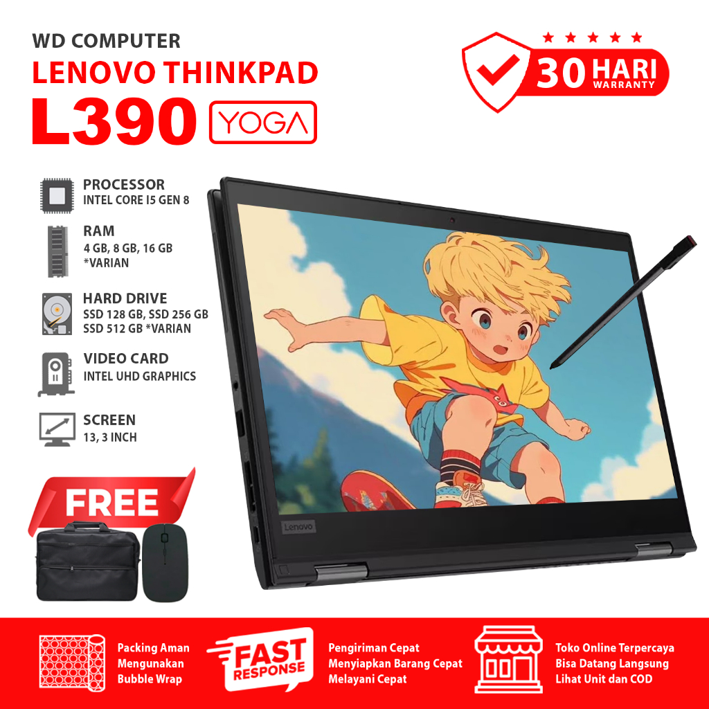 LAPTOP LENOVO L390 YOGA TOUCHSCREEN I CORE I5 GEN 8 I RAM 32 GB SSD NVME 1 TB I LAPTOP DESIGN GRAFIS