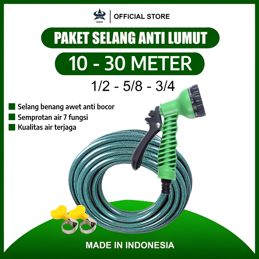 GEMUK Selang Air Cuci Motor 10 Meter 30 Meter Dengan Semprotan Air 7 Mode Siram Selang Benang Anti Lumut Alat Siram