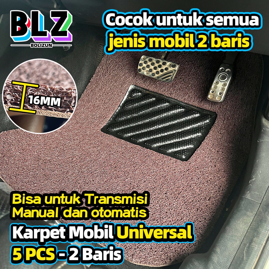 Karpet Mobil 5 Pcs 2 Baris Universal - Mie Bihun PVC - Ketebalan 16MM/ Universal bisa diaplikasikan ke semua mobil