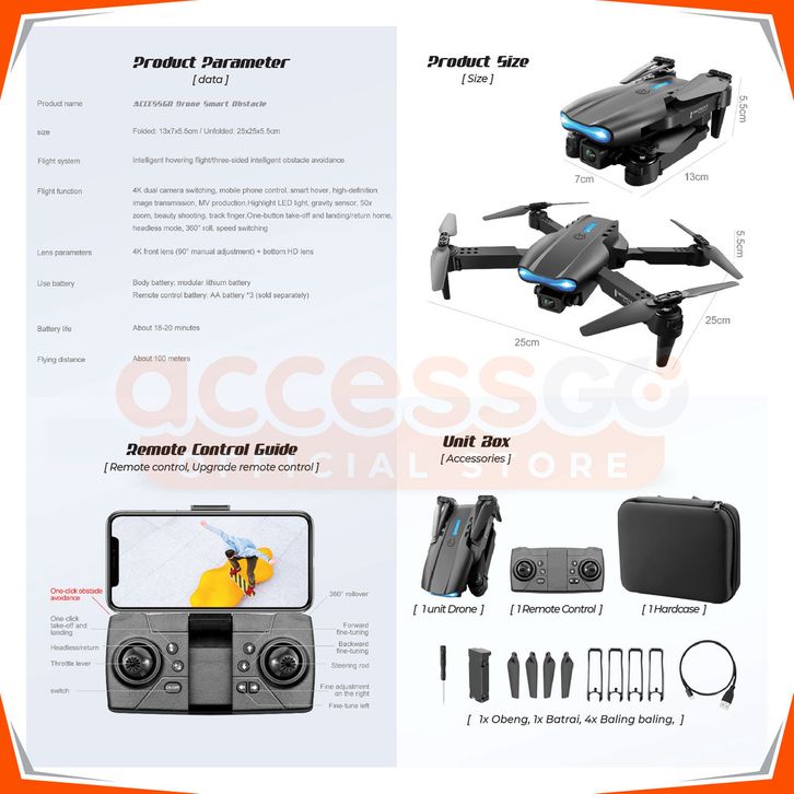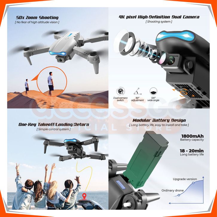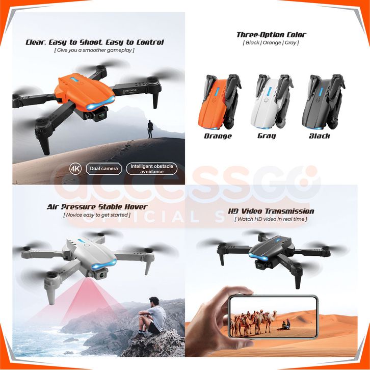 DRONE CAMERA E99 PRO ACCESSGO SMART DUAL CAMERA FULL HD KAMERA DIGITAL REMOTE CONTROL DRONE MINI MURAH E88PRO TERLARIS