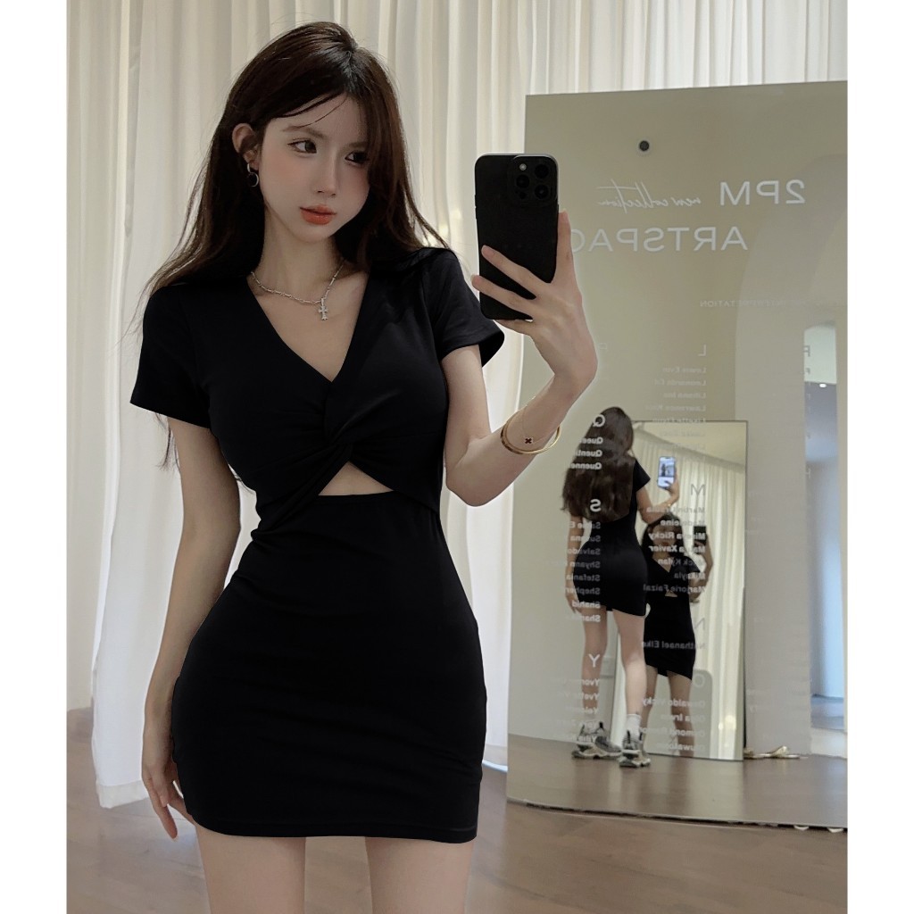 EMITA BLOOM dress ketat wanita pres body baju mini dress simple elegan lengan pendek wanita kekinian korea style gaun pe