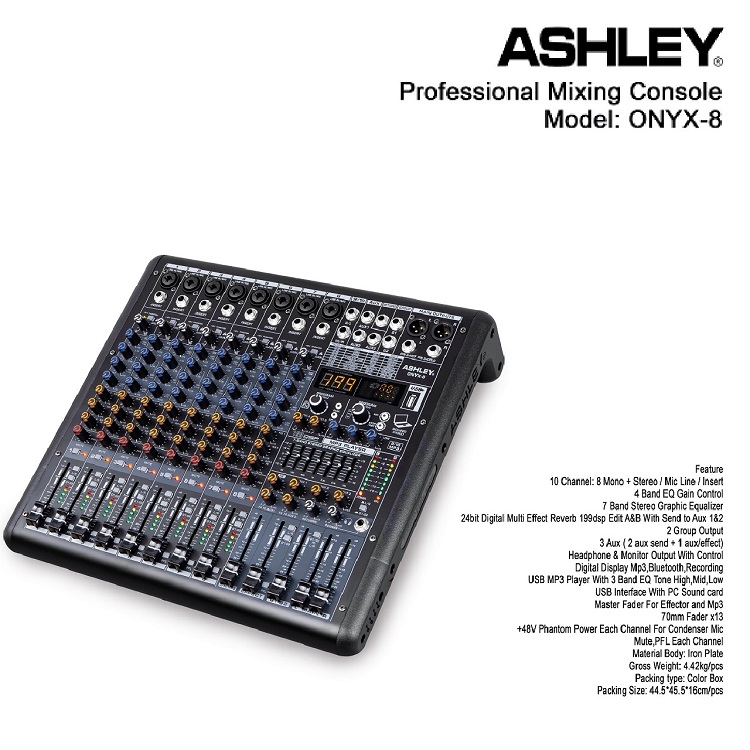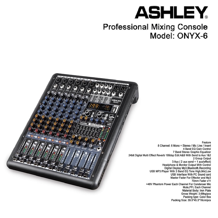 MIXER ASHLEY ONYX 4 6 8 CH USB-BLUETOOTH-RECORDING TO PC