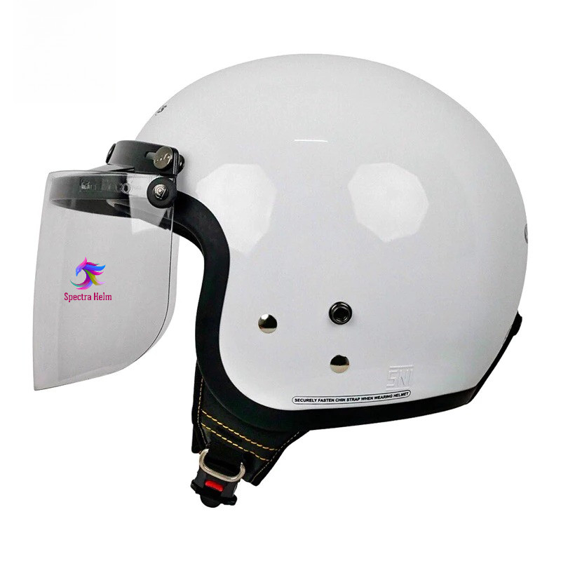 HELM CARGLOSS WANITA PRIA DEWASA + KACA DATAR UKURAN M DAN L FULL LEHER SNI