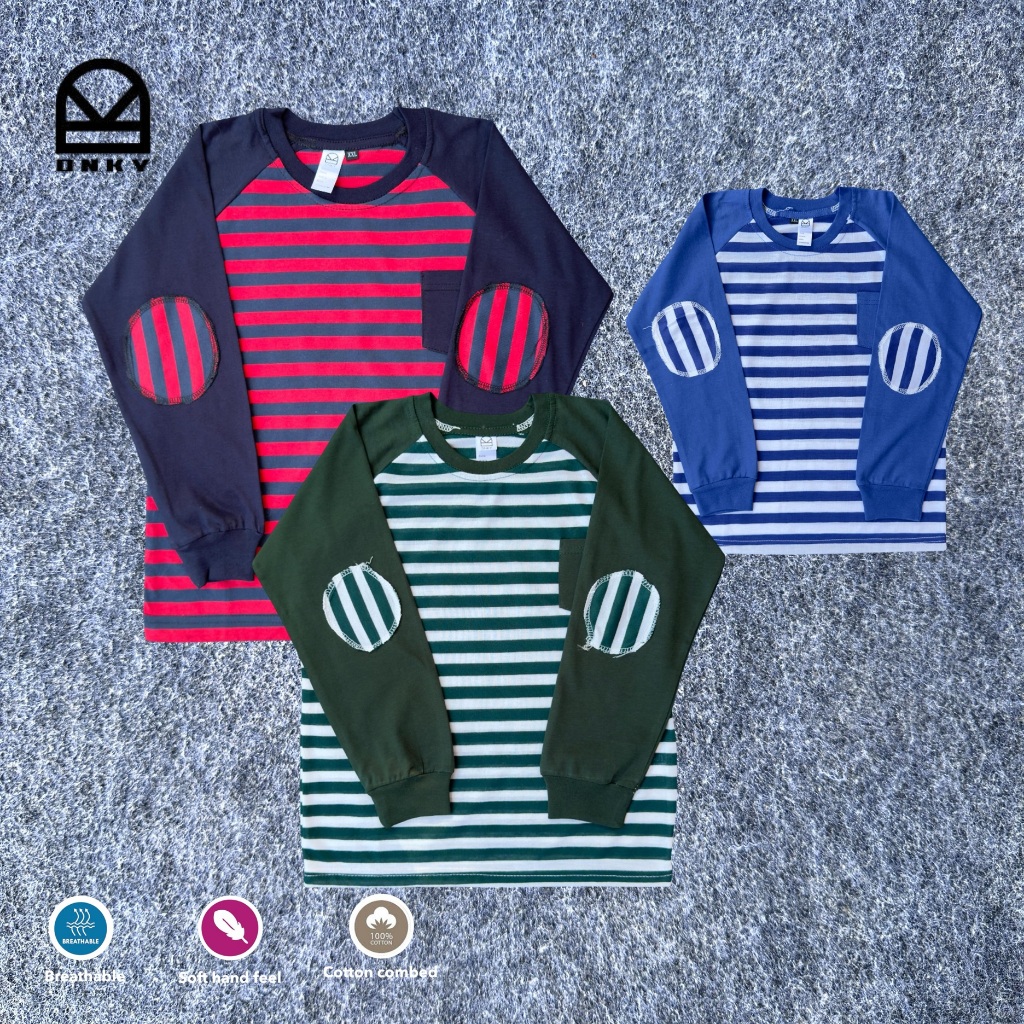 DNKY Baju Kaos Anak Lengan Panjang Motif Salur 1-12 Tahun