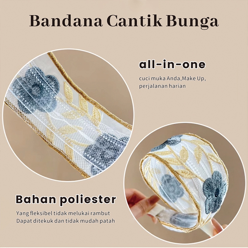 Vary Vase Ikat Rambut Bordir Bunga Bertepi Lebar Gaya Korea Bando Poni Aksesoris Rambut Wanita