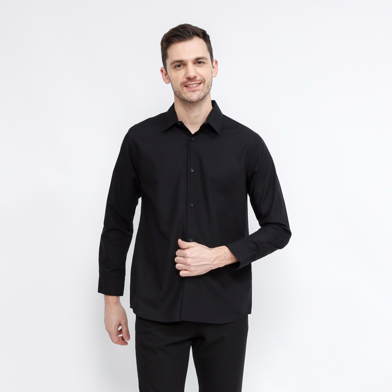 Heyplain Kemeja Hitam Lengan Panjang Slimfit - Kemeja Pria Lengan Panjang