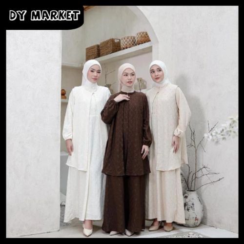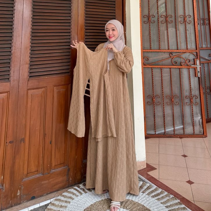 Fateema 2In1 Vol V Dress dan Outer Outfit Simple Lepas Pasang Baju Busui Gamis Outfit Elegant Kondangan Musli