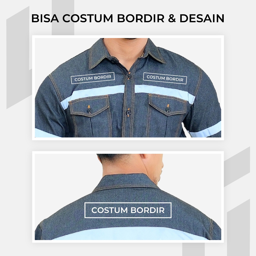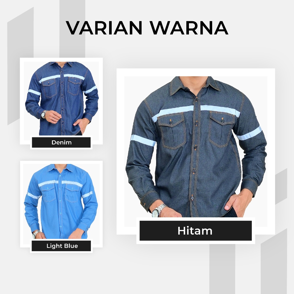Baju Wearpack Kemeja Safety Jeans K3 Proyek Tambang Lengan Panjang - Pakaian Seragam Werpak Kerja Atasan Scotlite Lapangan Warna Hitam Pria Wanita