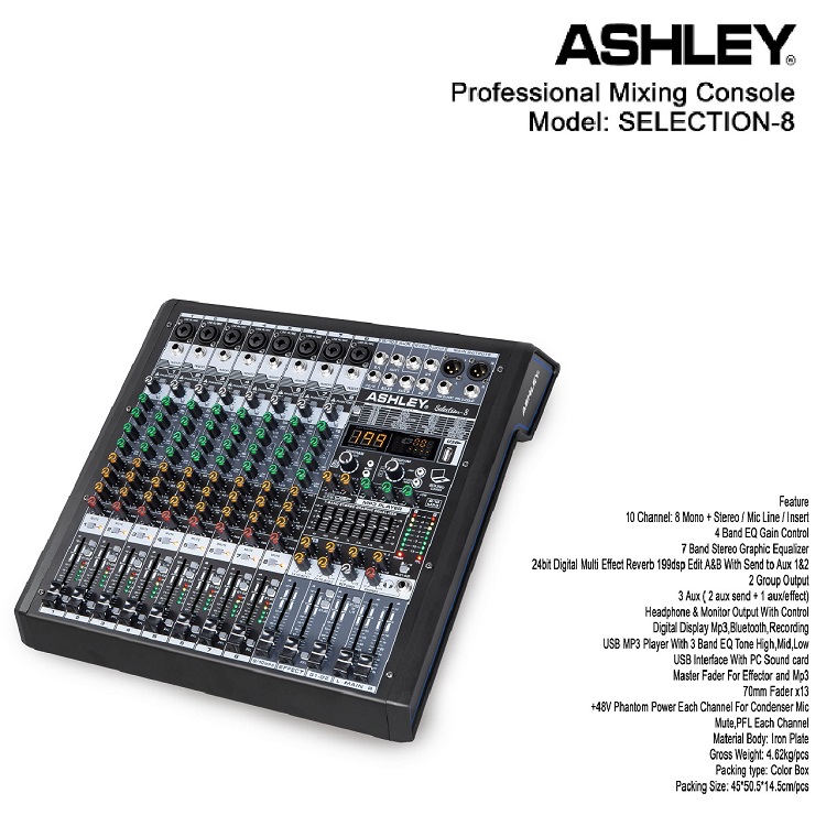 MIXER AUDIO ASHLEY SELECTION 4 6 8 CH USB-BLUETOOTH ORIGINAL
