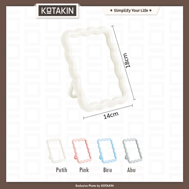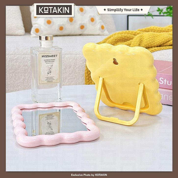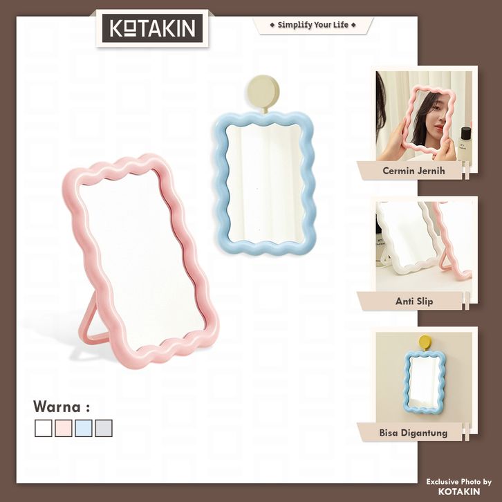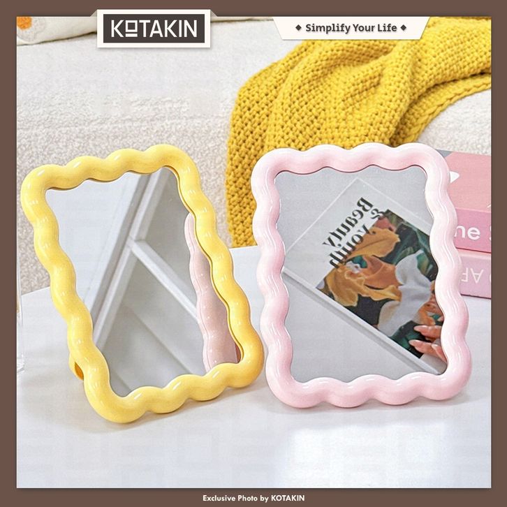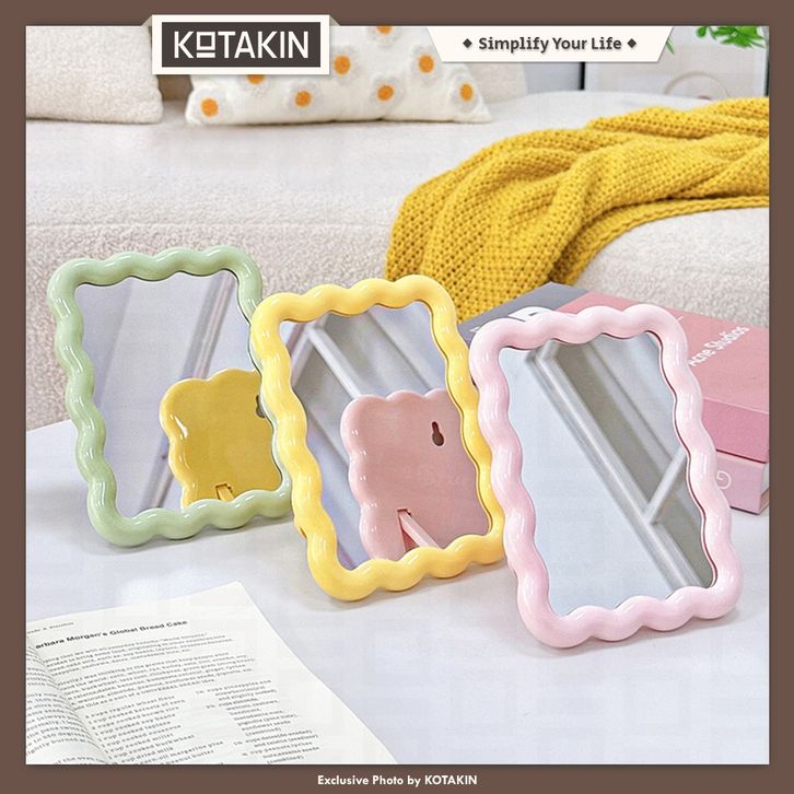 KOTAKIN Cermin Meja Aesthetic Standing Mirror Frame Gelombang Warna Pastel Lucu Kaca Rias Make Up Gantung Duduk