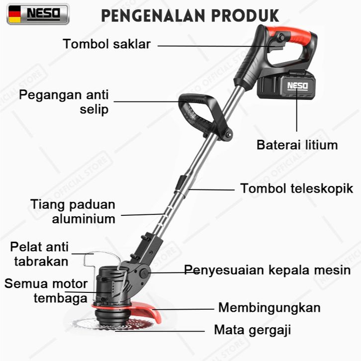 NESO JERMAN Lawn Mower Mesin potong rumput 598V/398V/298V Mesin pemotong rumput Pemangkas Rumput Listrik