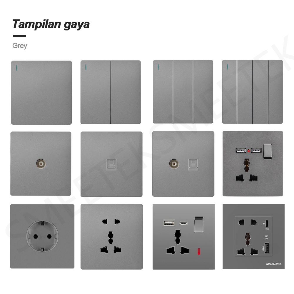 Saklar Lampu Stop Kontak Abu-Abu Smeetek Saklar Dinding Aesthetic 1/2/3/4 Gang Stop Kontak Universal / Soket Tv / Usb Ty
