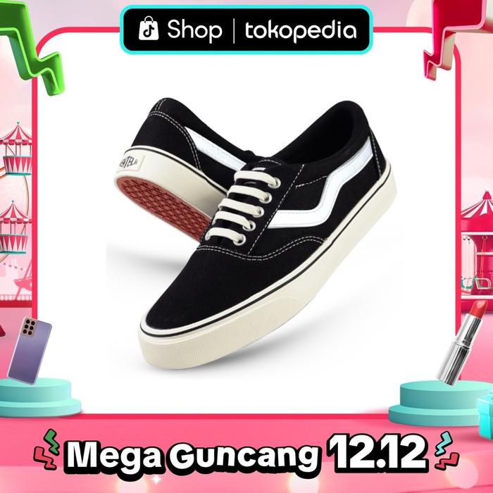 Sepatu Ventela Distro Pria Wanita Black Natural Casual Shoes Sneakers Hitam Snekers Karet - Black Natural 37