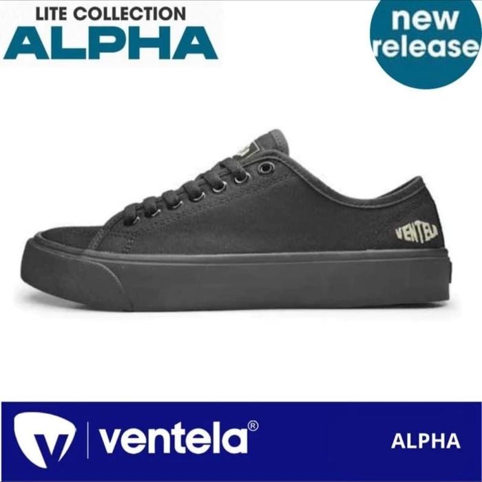 Ventela Alpha Low All Black Original - Sepatu Sneakers Casual Pria Wanita Shoes Hitam - ALPHA Allblack 37