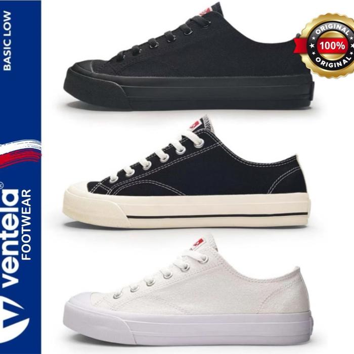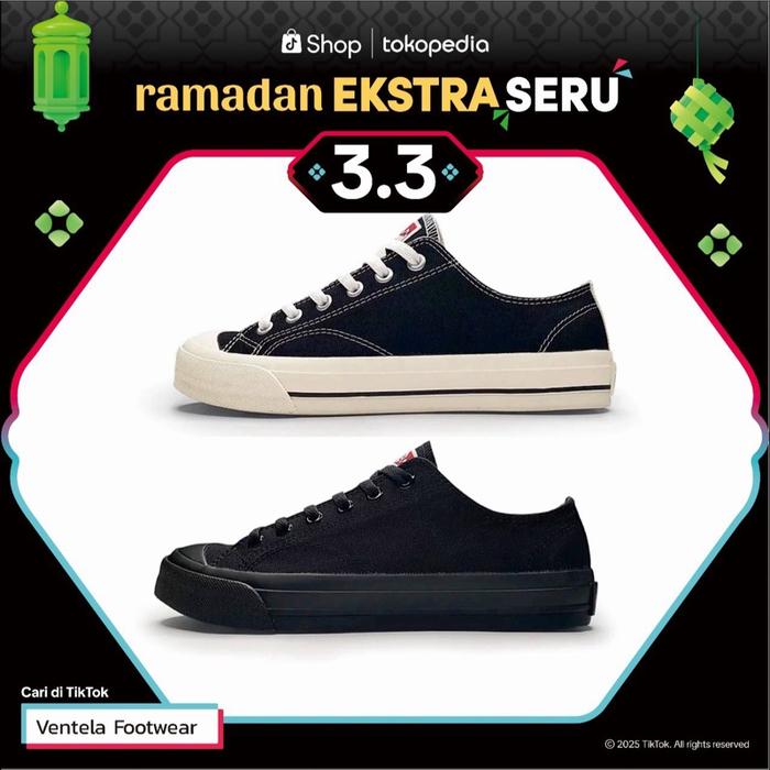 VENTELA BASIC LOW Black Natural/White/Allblack Casual Shoes Pria sepatu warrior - BLACK /NATURAL 33