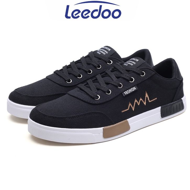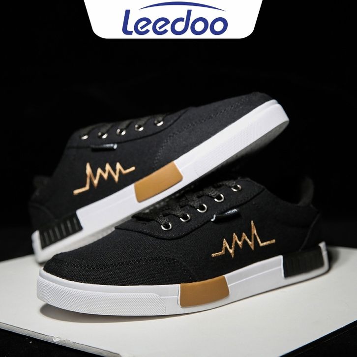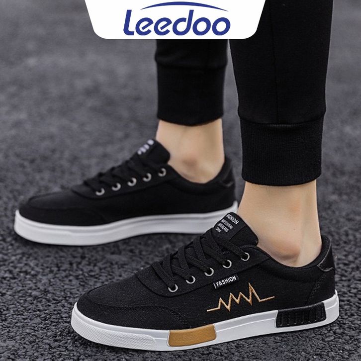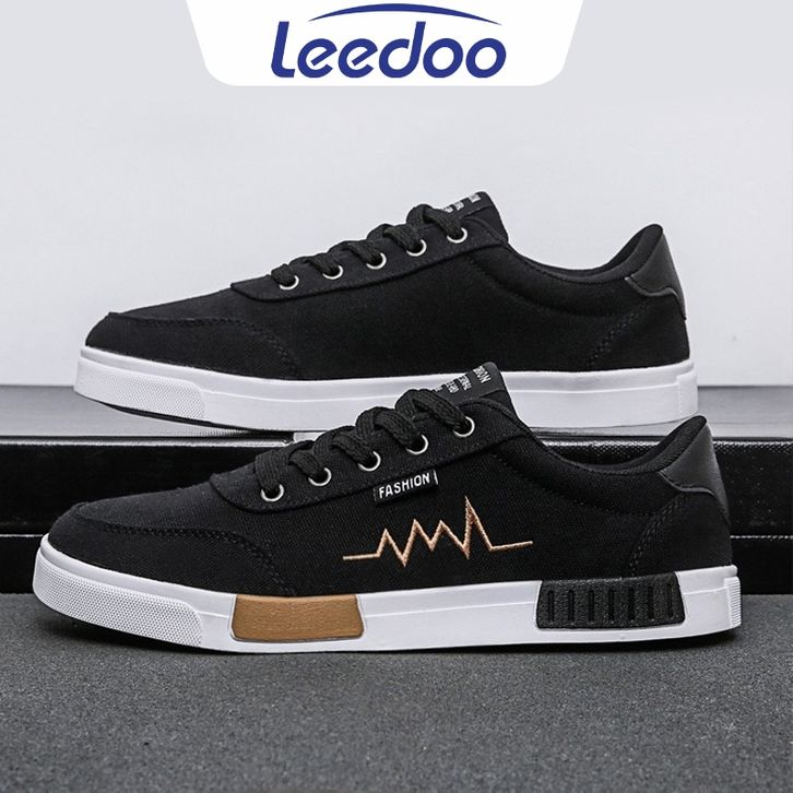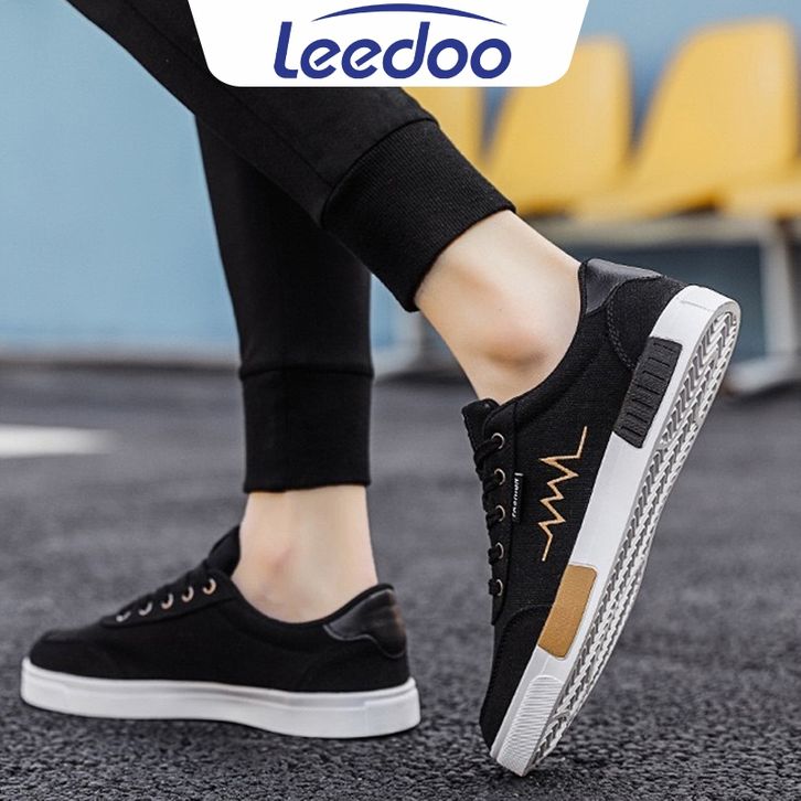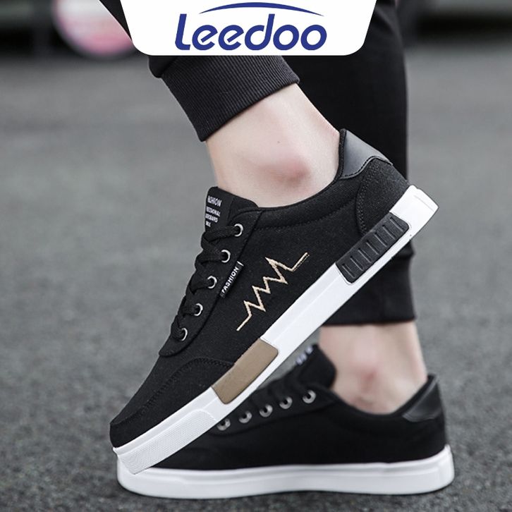 Sepatu sneakers pria Leedoo Sepatu Sneakers Tali Pria Casual Krem Sekolah Kerja Sport Shoes Kekinian Muda Black MC302 se