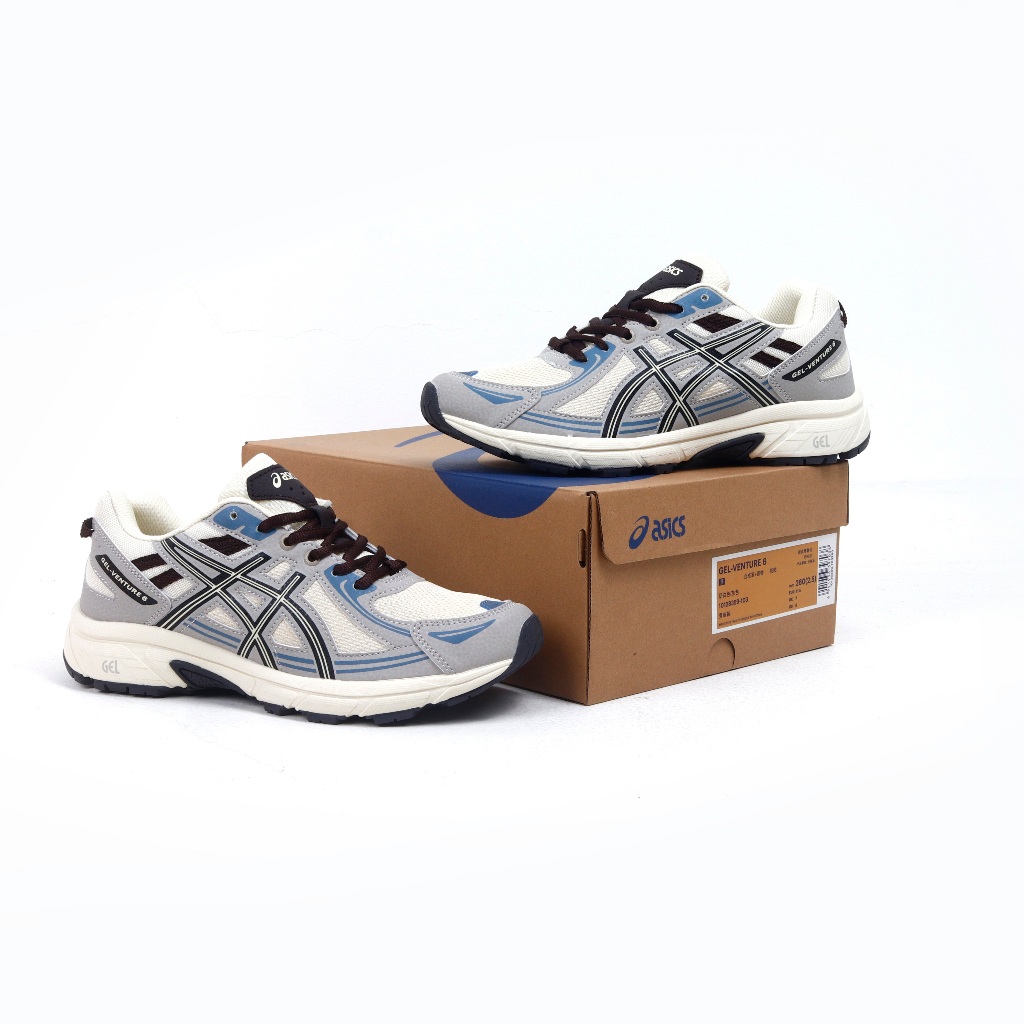 Asics Official Store - Asics Gel Venture 6 Cream Grey - Sepatu Asics Original - Sepatu Casual - Sepatu Sneakers