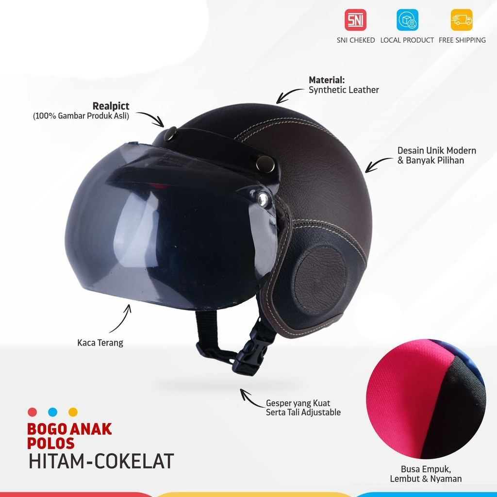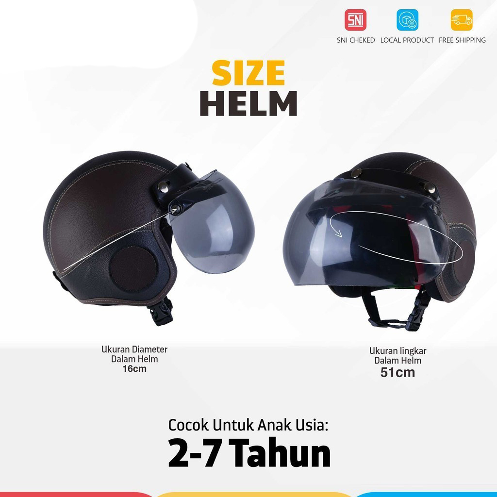 HELM ANAK RETRO BOGO PREMIUM 2 3 4 5 6 TAHUN POLOS FULL KULIT FREE KACA SNI LAKI LAKI PEREMPUAN