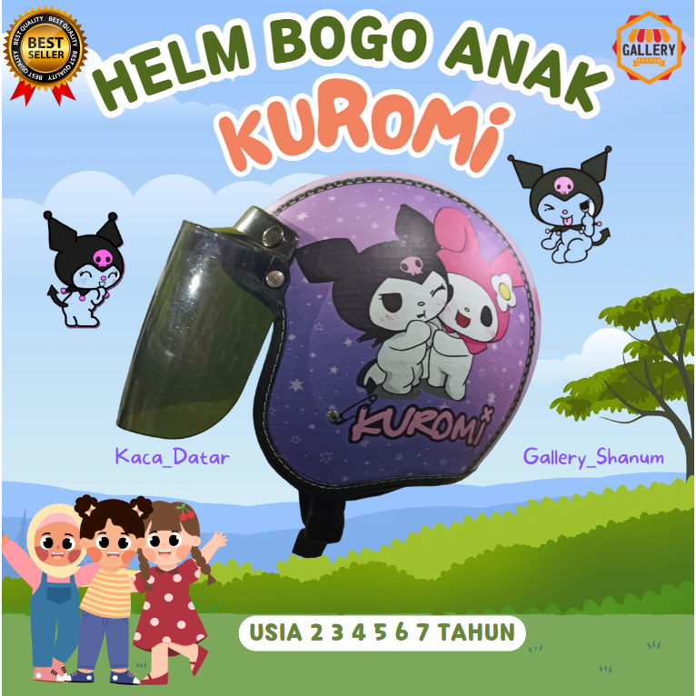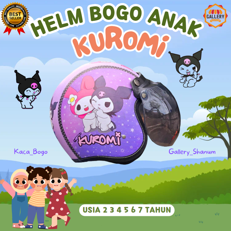 Helm Bogo Anak 2 3 4 5 6 7 Tahun Motif Kuromi Anak Cewek Sudah Packing Kardus+Bubble