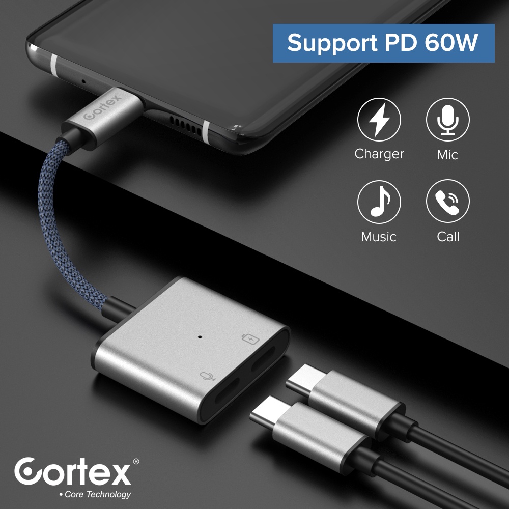 TDT - Cortex Power - MH336 Adapter Splitter 2 in 1 60W Tipe c to Tipe c to Type C USB C iPad Pro Xiaomi Samsung Google