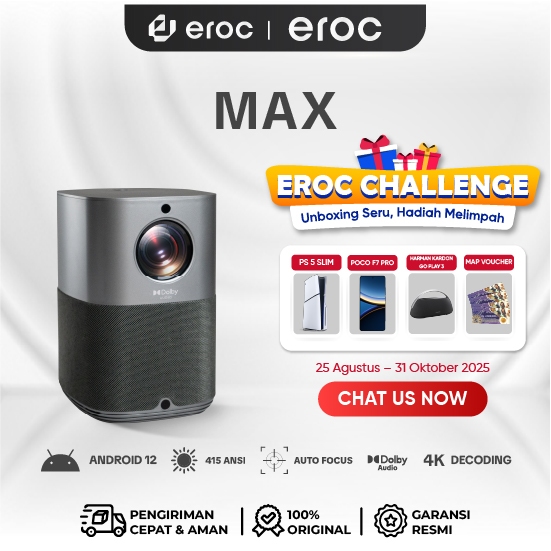 [Mall] EROC Smart Proyektor LCD 415 ANSI Full HD Android 12 Dolby Audio Display 200 Inch Auto Focus -MAX