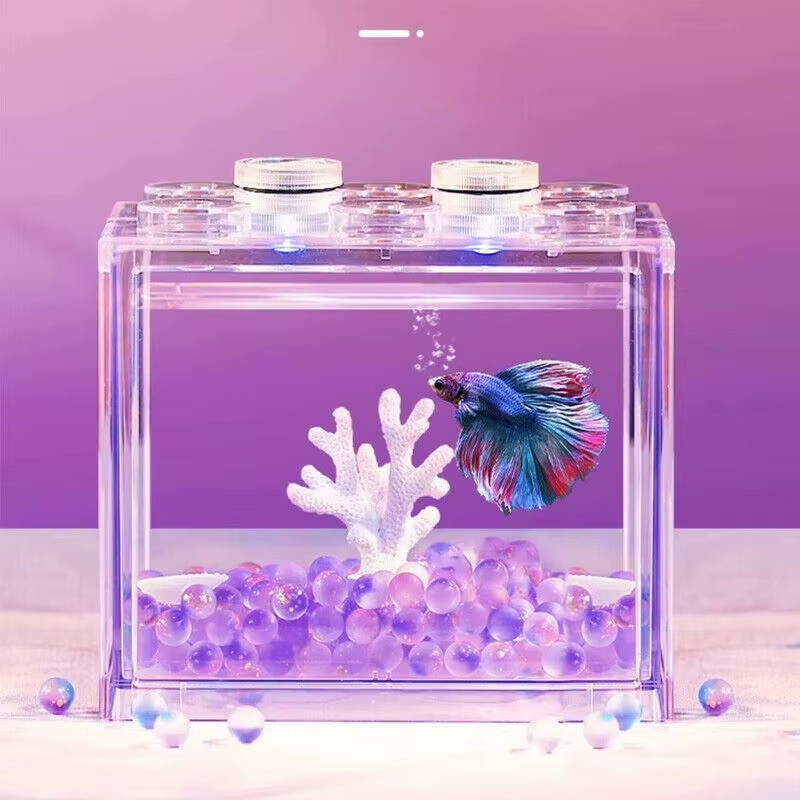 Aquarium Mini Lego Ikan Cupang Stackable 6 Warna - Bisa Pasang Lampu, Cocok untuk Ikan Cupang