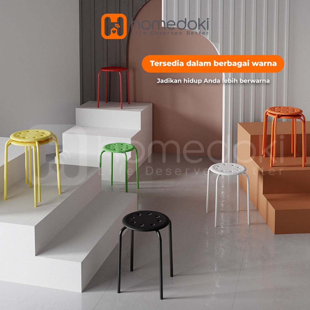 Homedoki Bangku Bakso/Bangku Makan/Bangku Cafe/Bangku Besi Kecil / Kursi Murah / Kursi Dapat Ditumpuk