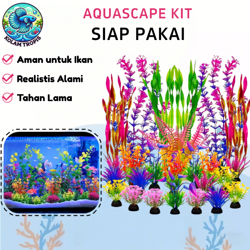Tanaman Aquarium Plastik Set Tanaman Air Aquascape Kit Siap Pakai Instan11/25pcs Dekorasi Aquascape