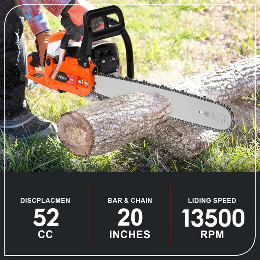 Mesin Potong Kayu 52CC 20" Chainsaw 2Tak Untuk Gergaji Mesin - Gergaji Potong Pohon Kayu