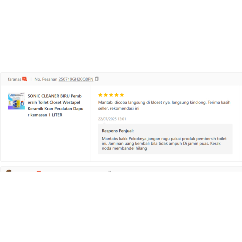 Pembersih Toilet SONIC Toilet Cleaner Menghilangkan Noda dan Kerak Membandel Toilet Closet 1 Liter