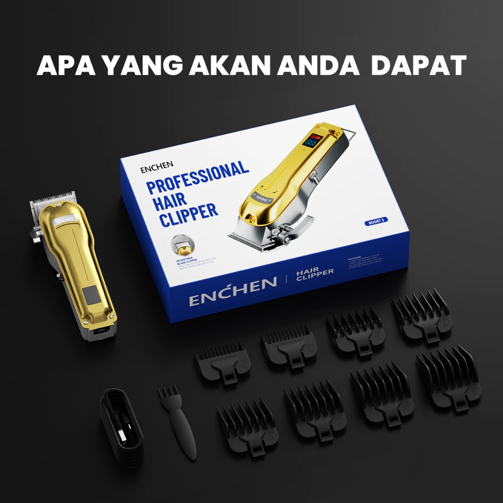[Mall] ENCHEN Alat Cukur Rambut Boost 3 Gold Hair Clipper Electric Metal Design