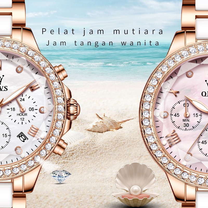 JAM TANGAN WANITA OLEVS Jam Tangan Wanita Original Anti Air Elegan Fashion Mewah Multifungsi Keramik Watch Women