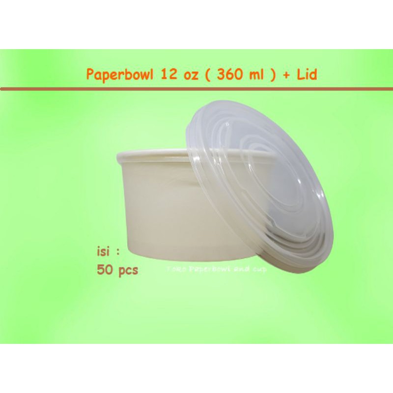 Paper bowl Mangkok Kertas 12 oz 360 ml POLOS + Tutup isi 50 pcs
