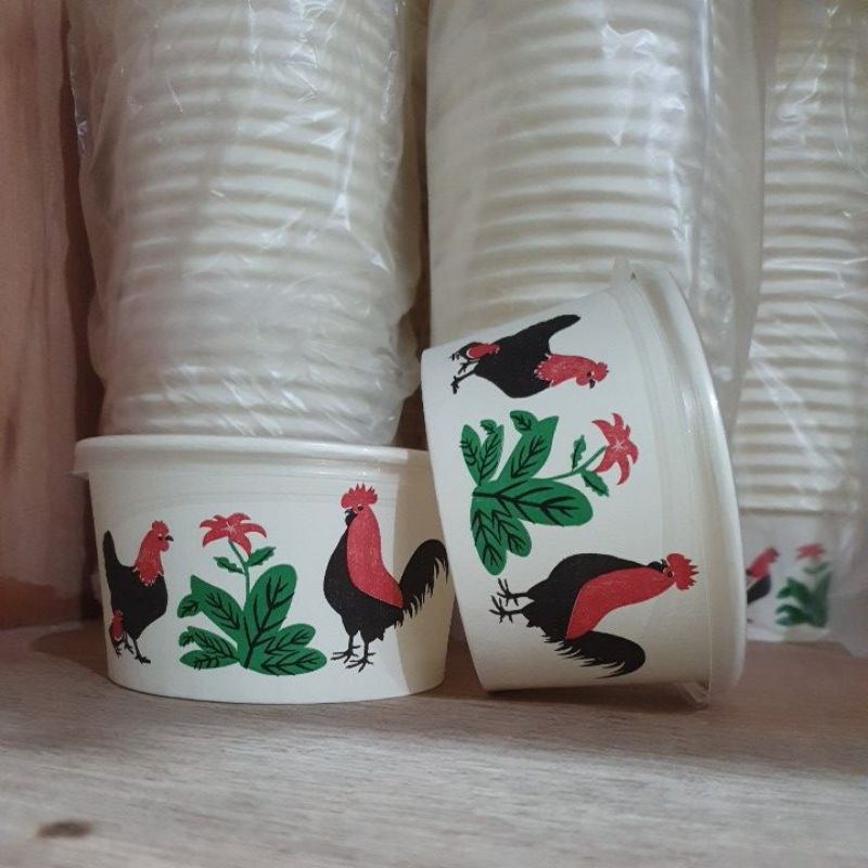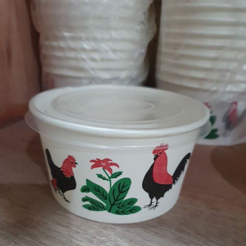 Paperbowl SET 22 oz ayam 650 ml + Tutup Mangkok kertas 500 pcs 1 dus