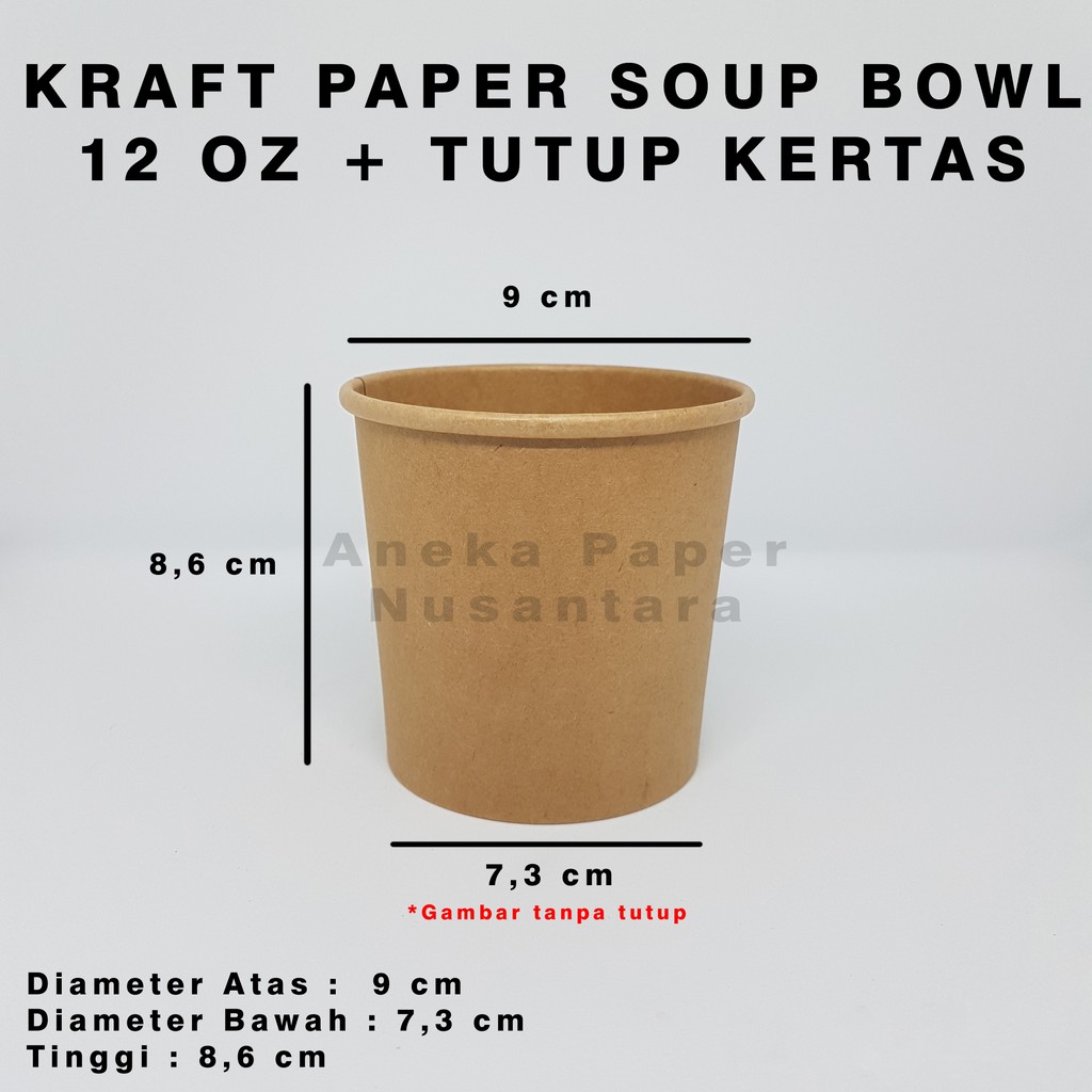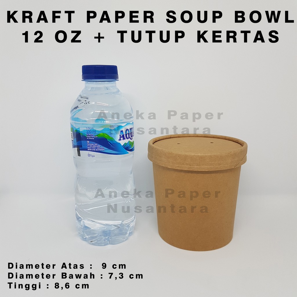 Paper Bowl + Lid Kraft Paper Food Grade - 12 Oz (isi 25 buah)