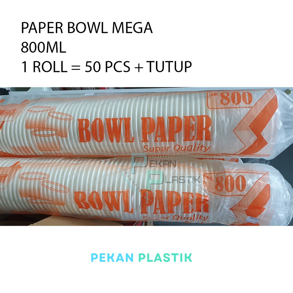 25Pcs Paper Bowl + Tutup Putih Polos Uk 800ml