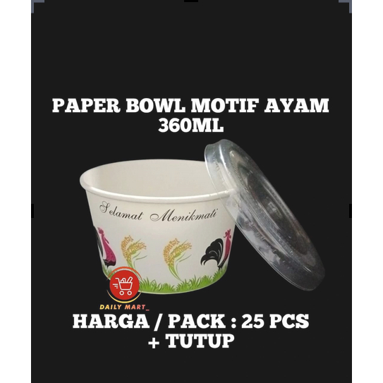 Paper Bowl Motif Ayam 360ml 500ml 650ml Isi 25pcs / Mangkok Kertas / Paper Bowl Take Away Papper