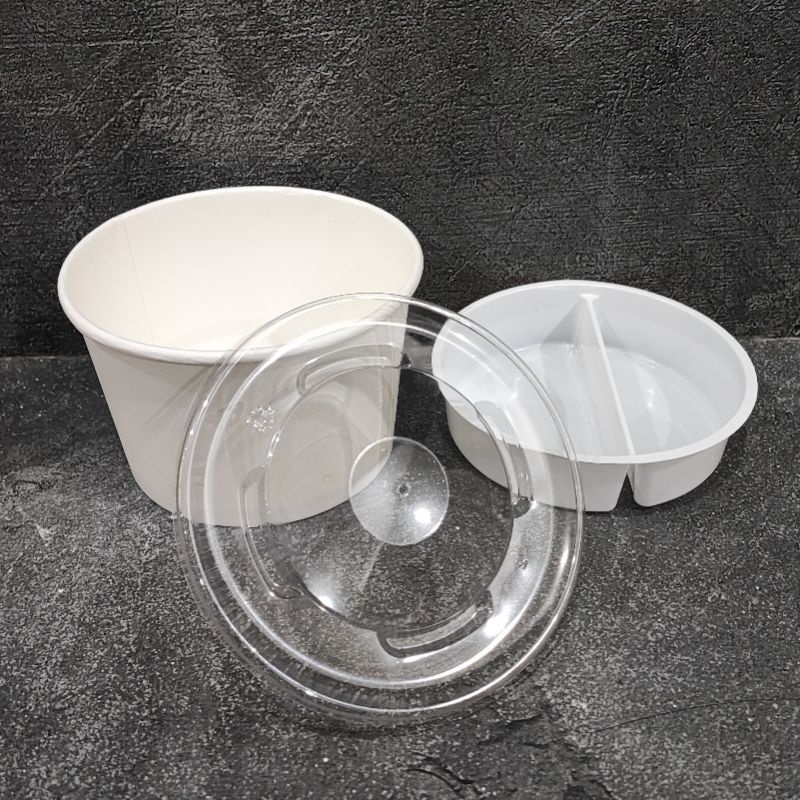 Paper bowl 800 ml isi 25 pcs / Mangkok kertas + inner tray sekat 2 + tutup