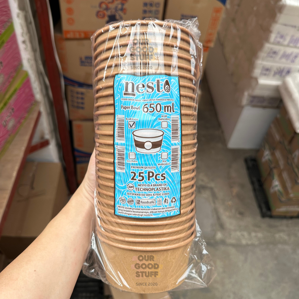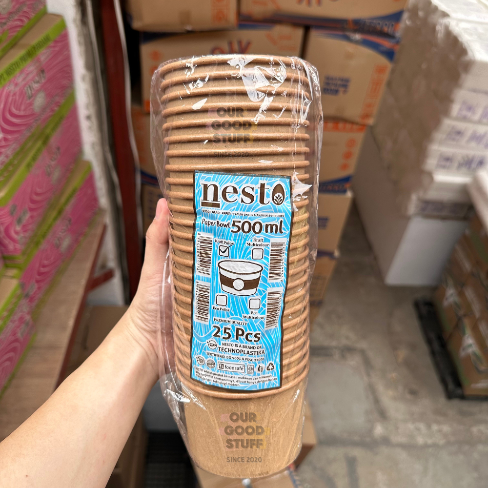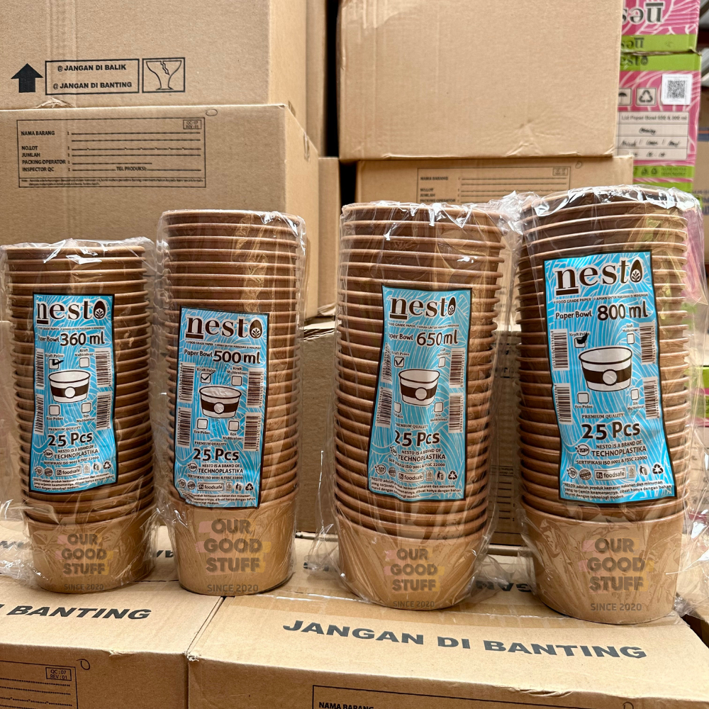 Paper Bowl Kraft isi 500pcs Ukuran 360ml 500ml 650ml 800ml Coklat Laminasi Merek NESTO