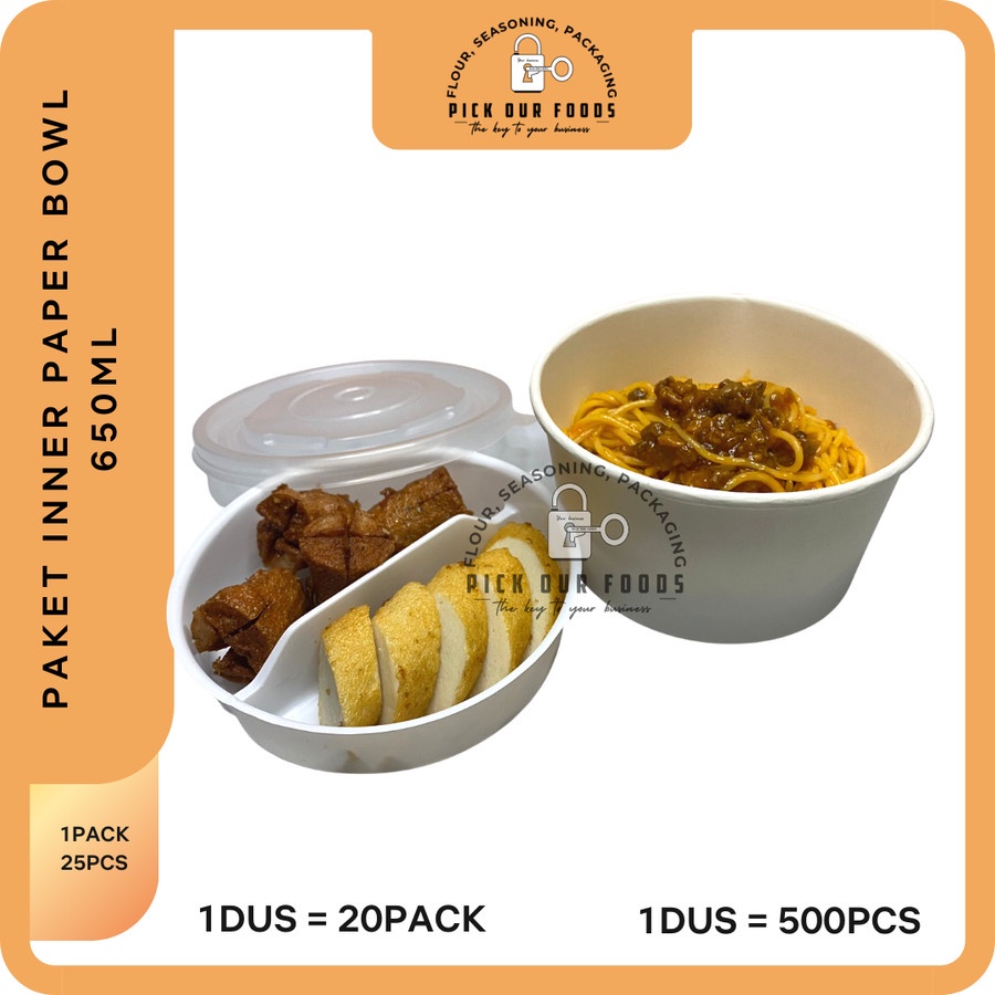 PAKET paperbowl 650ml / 800ml PLUS Inner Tray isi 25pcs