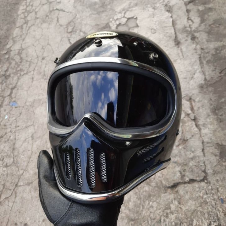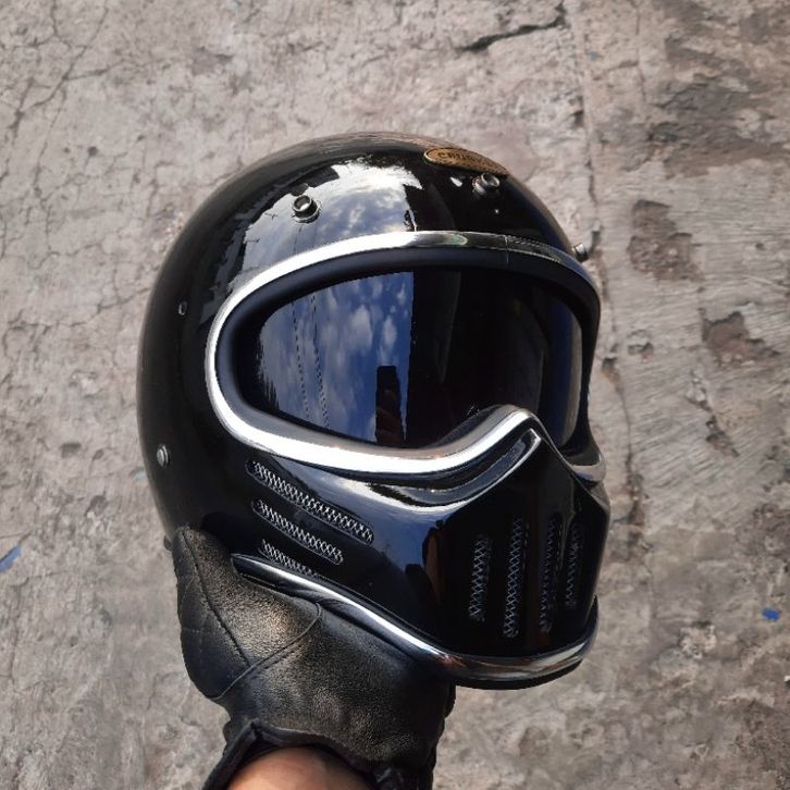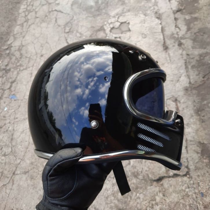 Helm Retro Custom Cakil M30 Black Glossy + Inner Visor