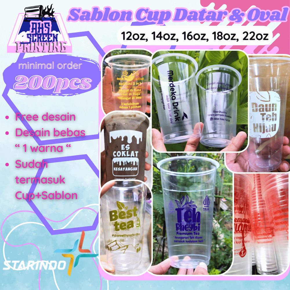 [Promo] sablon cup merk starindo oval 12,14,16,18,22 oz dan 14oz, 16oz, 22oz datar - AHS Sablon