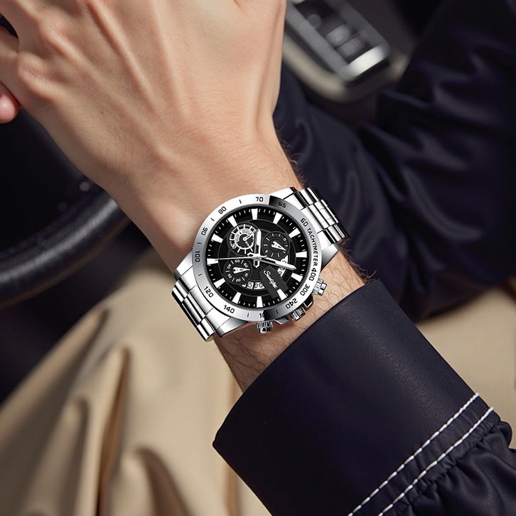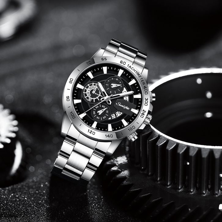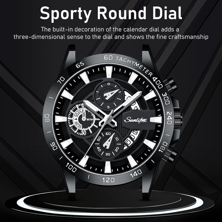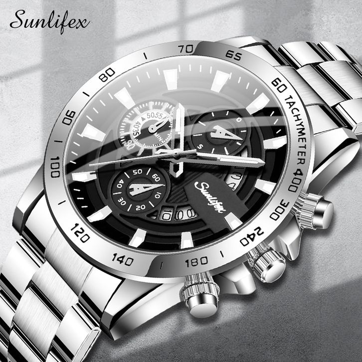 Sunlifex Jam Tangan Pria SL3321 Quartz Kalender Bercahaya Olahraga Tali Stainless Steel Jam Tangan Cowok