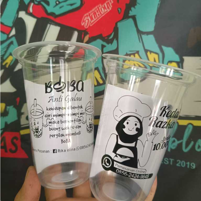 Sablon Gelas Cup Datar/Oval Bahan Tebal Ukuran 10,12,14,16,18 dan 22 Oz, Gratis Desain, 100 Cup