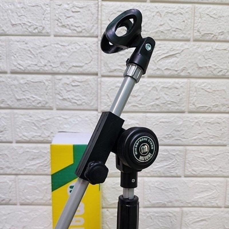 Stand Mic Pendek Maruni Coating Silver +Holder